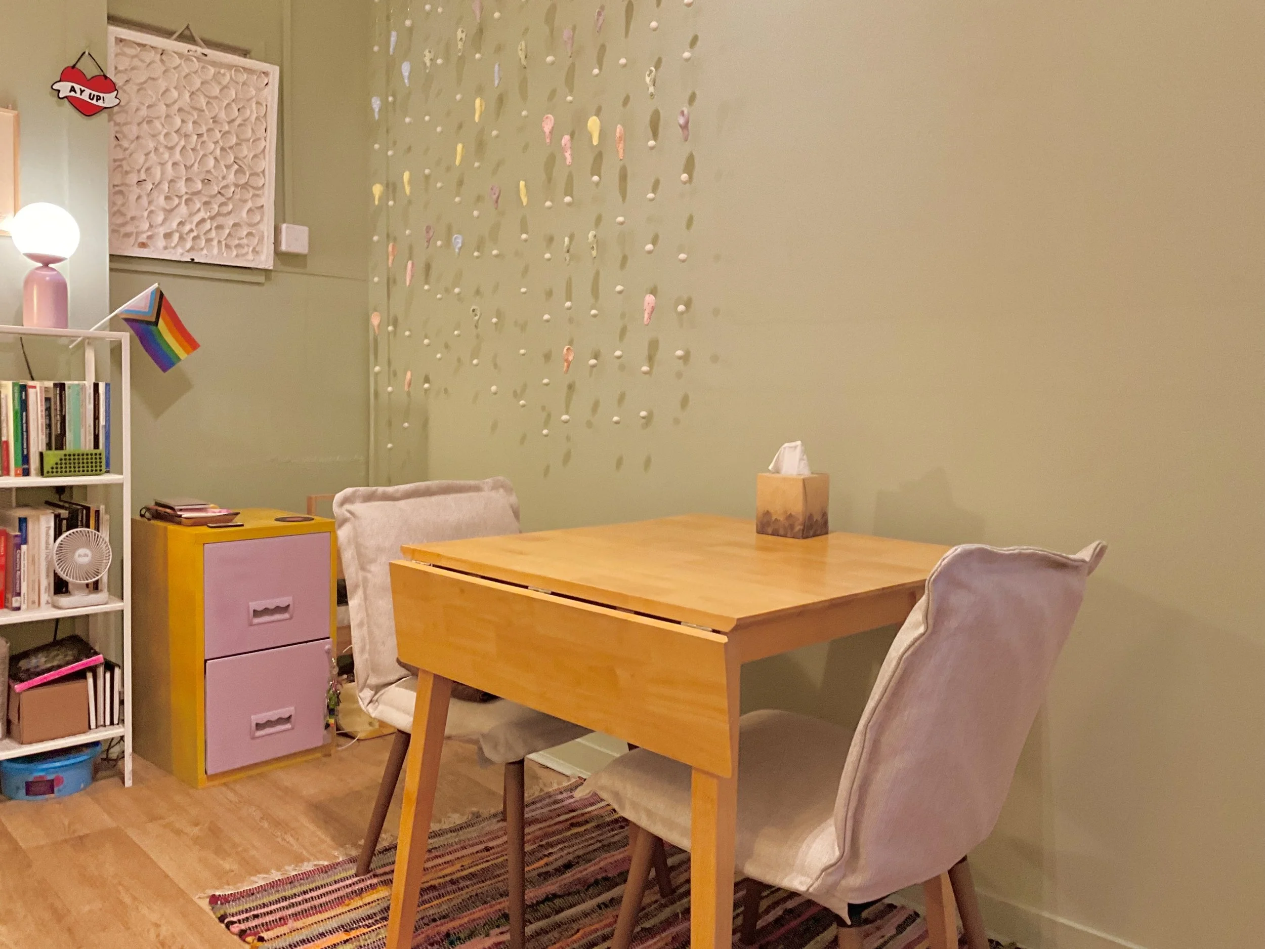 I aim to make my therapy space as accessible as possible. If you have further access needs please let me know so I can accommodate when possible.